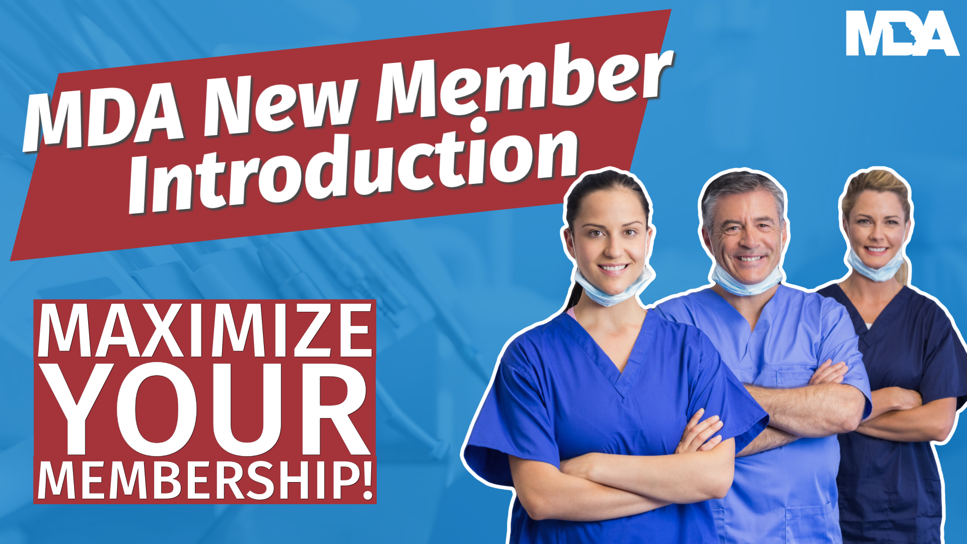 Welcome to the MDA! We're here for you in small ways, like calling the MDA office to ask staff a question about an issue you’re facing today. And, in big ways, too, like knowing we work to advocate and protect the dental profession. Click the video thumbnail above to get an overview of the resources available to you, what the MDA is doing for you, and how you can Maximize Your Membership! Welcome to the MDA family … together, we thrive!”